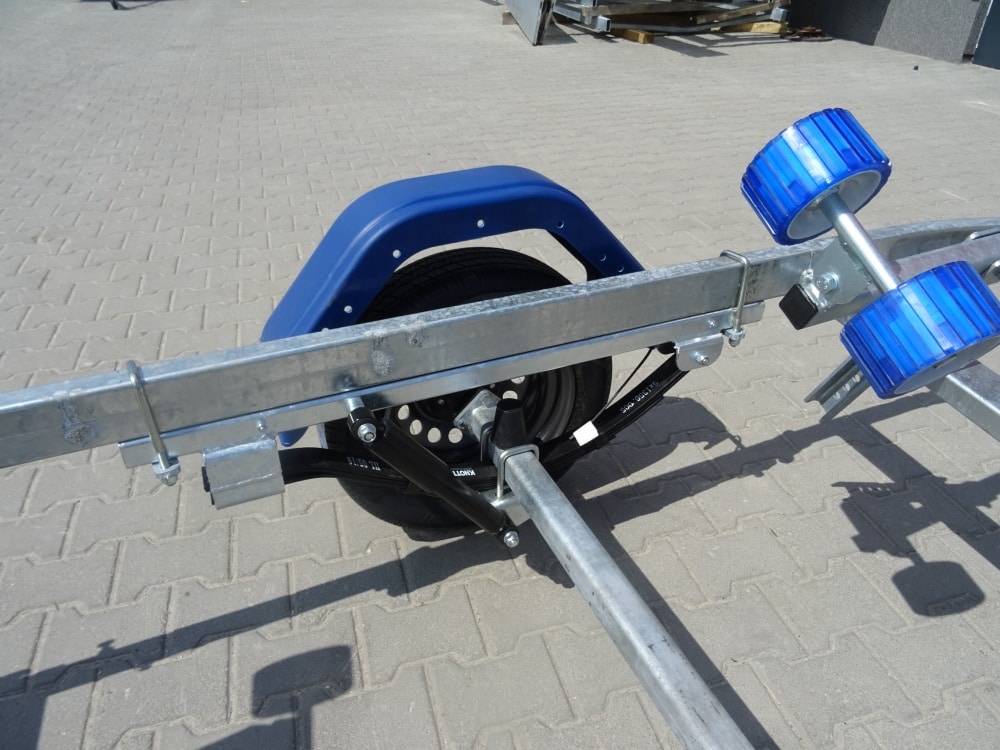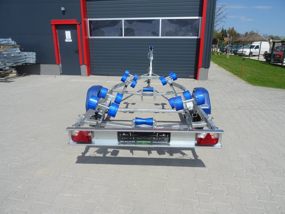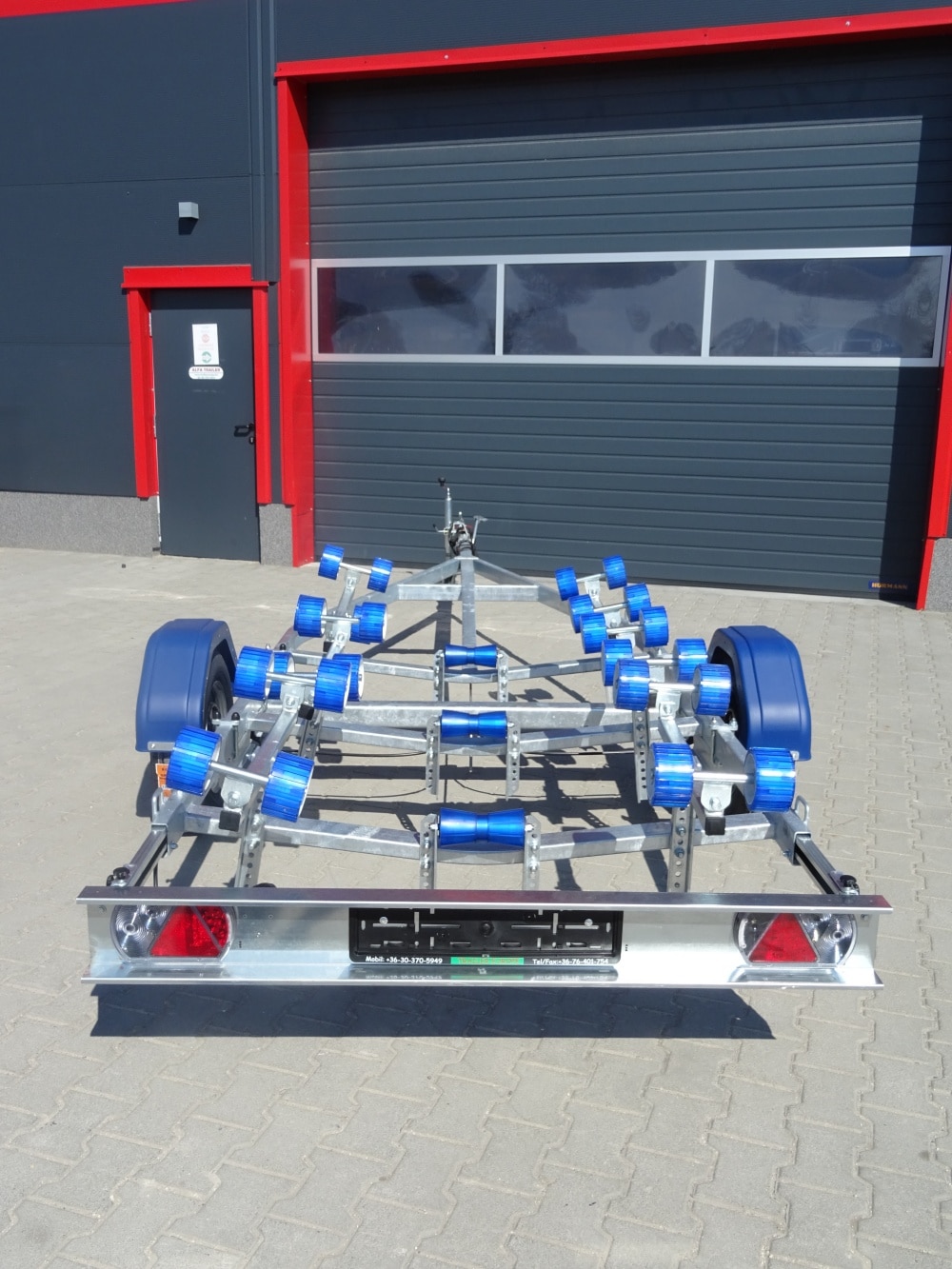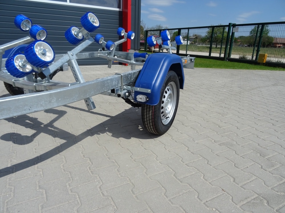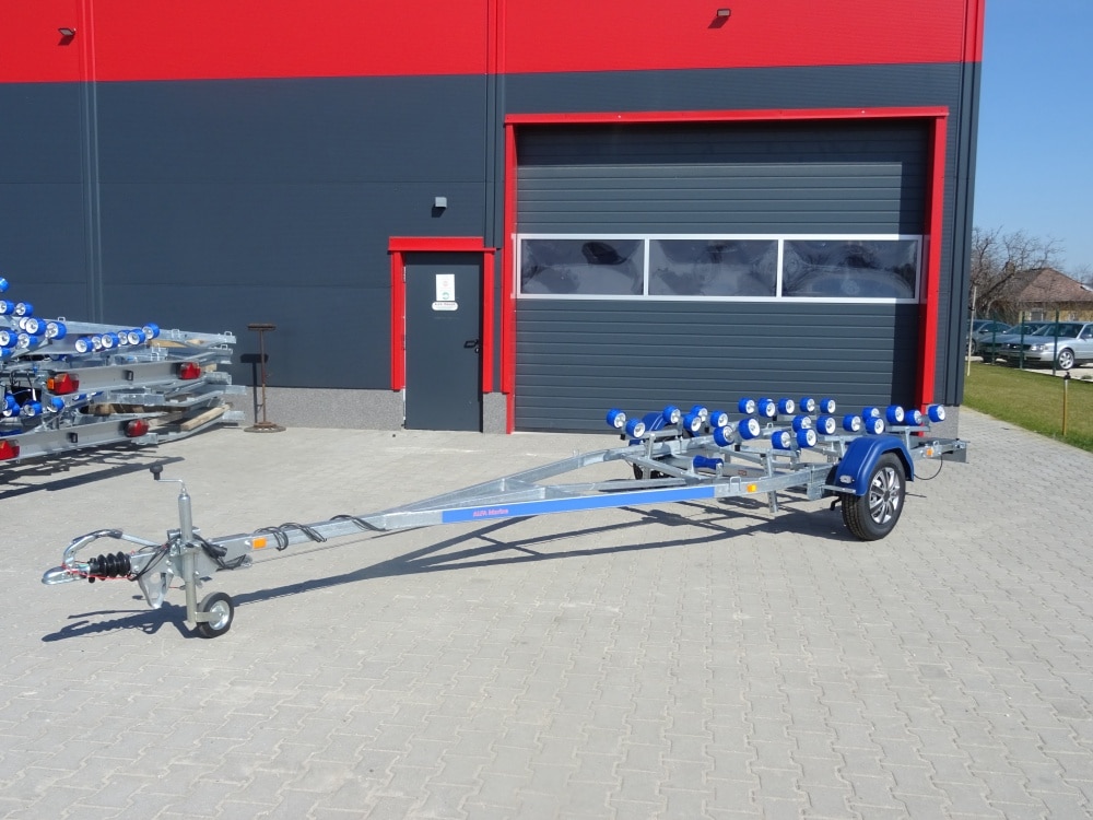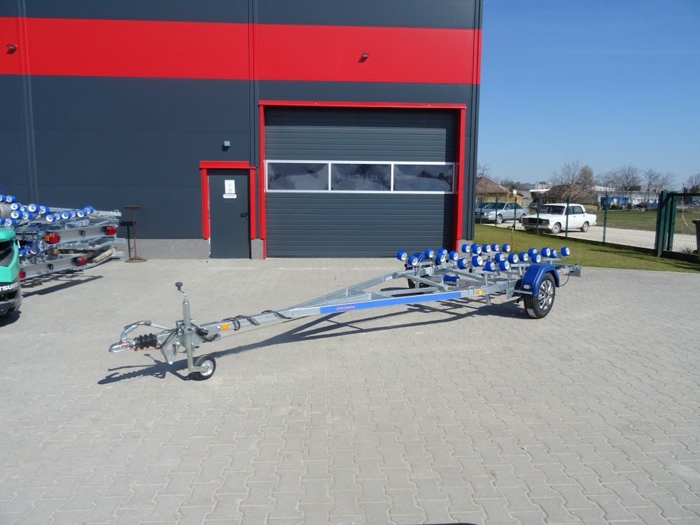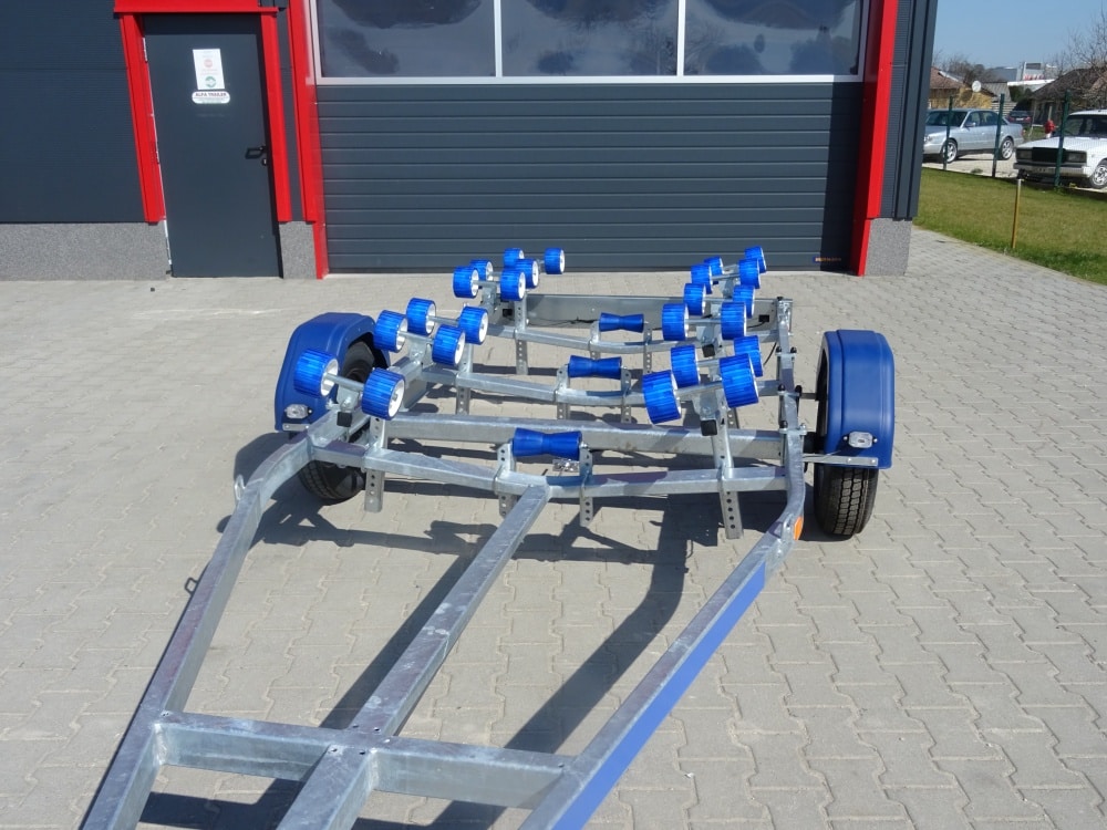 Az Alfa Marine csónakszállító utánfutó tűzihorganyzott acélszerkezete maximális védelmet biztosít a korrózióval és az időjárás viszontagságaival szemben. A csónak alátámasztását párnafák vagy görgők biztosítják, amelyek stabil és kíméletes megtámasztást nyújtanak a hajótest számára. Az erős alváz és a precízen kialakított tartóelemek kiemelkedő stabilitást garantálnak még teljes terhelés mellett is. A hátsó rész kihúzható, így a hosszabb csónaktestek is könnyedén felhelyezhetők és biztonságosan rögzíthetők. A nyitott kialakítás lehetővé teszi különféle méretű és formájú vízi járművek szállítását. A szerkezet kialakítása praktikus, könnyű kezelhetőséget és egyszerű használatot tesz lehetővé minden körülmény között. A kiváló anyaghasználat biztosítja a hosszú távú, megbízható működést. Az utánfutó jól viseli az úthibák okozta rázkódásokat és a rendszeres használatból eredő fizikai terhelést. A „További információk” szekcióban részletes adatokat talál a hajó és csónakszállító méreteiről, felszereltségéről és opcionális kiegészítőiről.