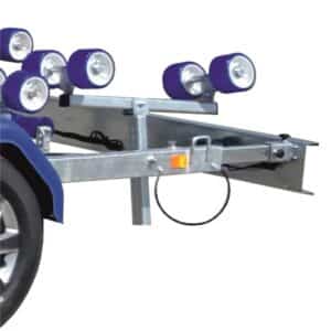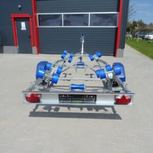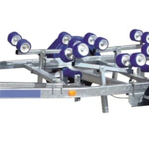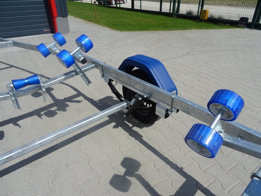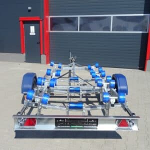 Az ALFA Marine csónakszállító alvázát megbízható, Knott gyártmányú torziós tengely alkotja. A 185R14C méretű kerekek megfelelő stabilitást és terhelhetőséget biztosítanak a vízi járművek szállításához. A csónak alátámasztását párnafák vagy görgők biztosítják, amelyek stabil és biztonságos elhelyezést nyújtanak szállítás közben. A V-típusú vonórúd kiváló vontatási stabilitást garantál menet közben. A váz és tartóelemek teljes egészében horganyzott acélból készülnek, bordázott kialakításuk révén merev szerkezetet alkotnak, amely ellenáll a deformálódásnak. A hátsó rész kihúzható, így a csónak fel- és lehelyezése gyorsan és egyszerűen elvégezhető. Az ALFA Marine csónakszállító ideális választás minden olyan felhasználó számára, aki megbízható és tartós megoldást keres vízi járműve szállításához.
