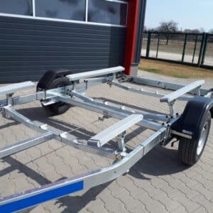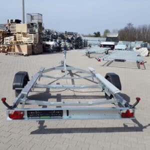 Az ALFA Marine csónakszállító alvázát megbízható, Knott gyártmányú torziós tengely alkotja. A 165R13C méretű kerekek megfelelő stabilitást és terhelhetőséget biztosítanak a vízi járművek szállításához. A csónak alátámasztását párnafák vagy görgők biztosítják, amelyek stabil és biztonságos elhelyezést nyújtanak szállítás közben. A V-típusú vonórúd kiváló vontatási stabilitást garantál menet közben. A váz és tartóelemek teljes egészében horganyzott acélból készülnek, bordázott kialakításuk révén merev szerkezetet alkotnak, amely ellenáll a deformálódásnak. A hátsó rész kihúzható, így a csónak fel- és lehelyezése gyorsan és egyszerűen elvégezhető. Az ALFA Marine csónakszállító ideális választás minden olyan felhasználó számára, aki megbízható és tartós megoldást keres vízi járműve szállításához.