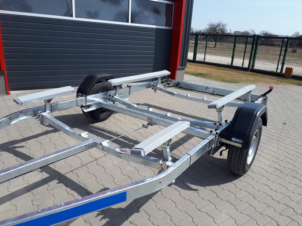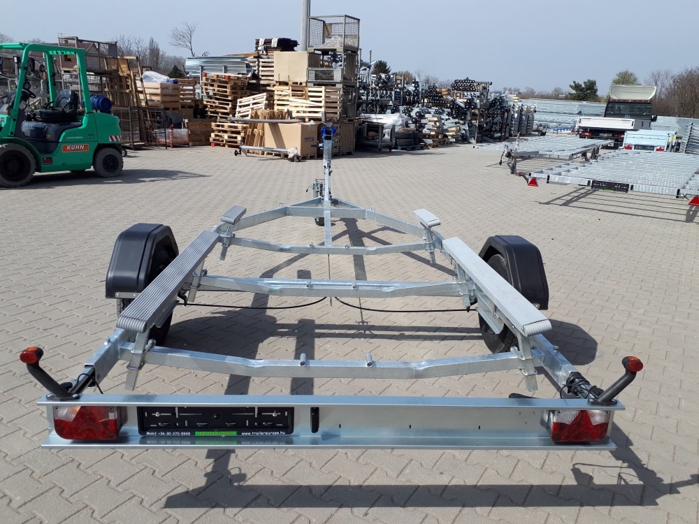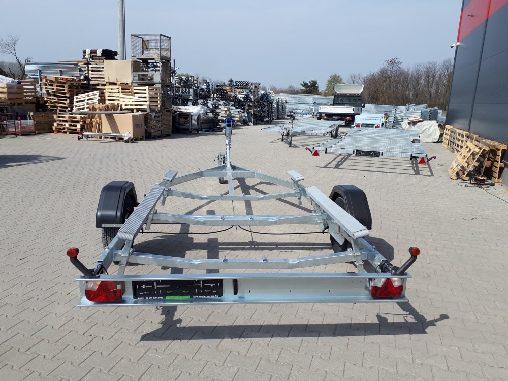 Az Alfa Marine csónakszállító utánfutó tűzihorganyzott acélszerkezete maximális védelmet biztosít a korrózióval és az időjárás viszontagságaival szemben. A csónak alátámasztását párnafák vagy görgők biztosítják, amelyek stabil és kíméletes megtámasztást nyújtanak a hajótest számára. Az erős alváz és a precízen kialakított tartóelemek kiemelkedő stabilitást garantálnak még teljes terhelés mellett is. A hátsó rész kihúzható, így a hosszabb csónaktestek is könnyedén felhelyezhetők és biztonságosan rögzíthetők. A nyitott kialakítás lehetővé teszi különféle méretű és formájú vízi járművek szállítását. A szerkezet kialakítása praktikus, könnyű kezelhetőséget és egyszerű használatot tesz lehetővé minden körülmény között. A kiváló anyaghasználat biztosítja a hosszú távú, megbízható működést. Az utánfutó jól viseli az úthibák okozta rázkódásokat és a rendszeres használatból eredő fizikai terhelést. A „További információk” szekcióban részletes adatokat talál a hajó és csónakszállító méreteiről, felszereltségéről és opcionális kiegészítőiről.