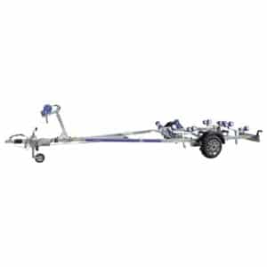 Az ALFA Marine csónakszállító alvázát megbízható, Knott gyártmányú torziós tengely alkotja. A 165R13C méretű kerekek megfelelő stabilitást és terhelhetőséget biztosítanak a vízi járművek szállításához. A csónak alátámasztását párnafák vagy görgők biztosítják, amelyek stabil és biztonságos elhelyezést nyújtanak szállítás közben. A V-típusú vonórúd kiváló vontatási stabilitást garantál menet közben. A váz és tartóelemek teljes egészében horganyzott acélból készülnek, bordázott kialakításuk révén merev szerkezetet alkotnak, amely ellenáll a deformálódásnak. A hátsó rész kihúzható, így a csónak fel- és lehelyezése gyorsan és egyszerűen elvégezhető. Az ALFA Marine csónakszállító ideális választás minden olyan felhasználó számára, aki megbízható és tartós megoldást keres vízi járműve szállításához.