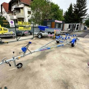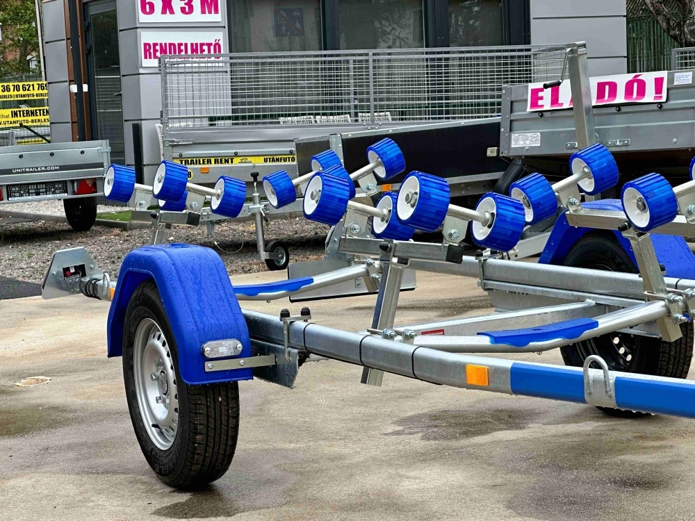 Csónakszállító utánfutó – teljes körű ügyintézéssel és gyors szállítással. Az csónakszállító EK-Megfelelősségi nyilatkozattal, Műszaki adatlappal, Műszaki vizsgálati bizonyítvánnyal, Járműkísérő lappal és részletes dokumentációval kerül átadásra.