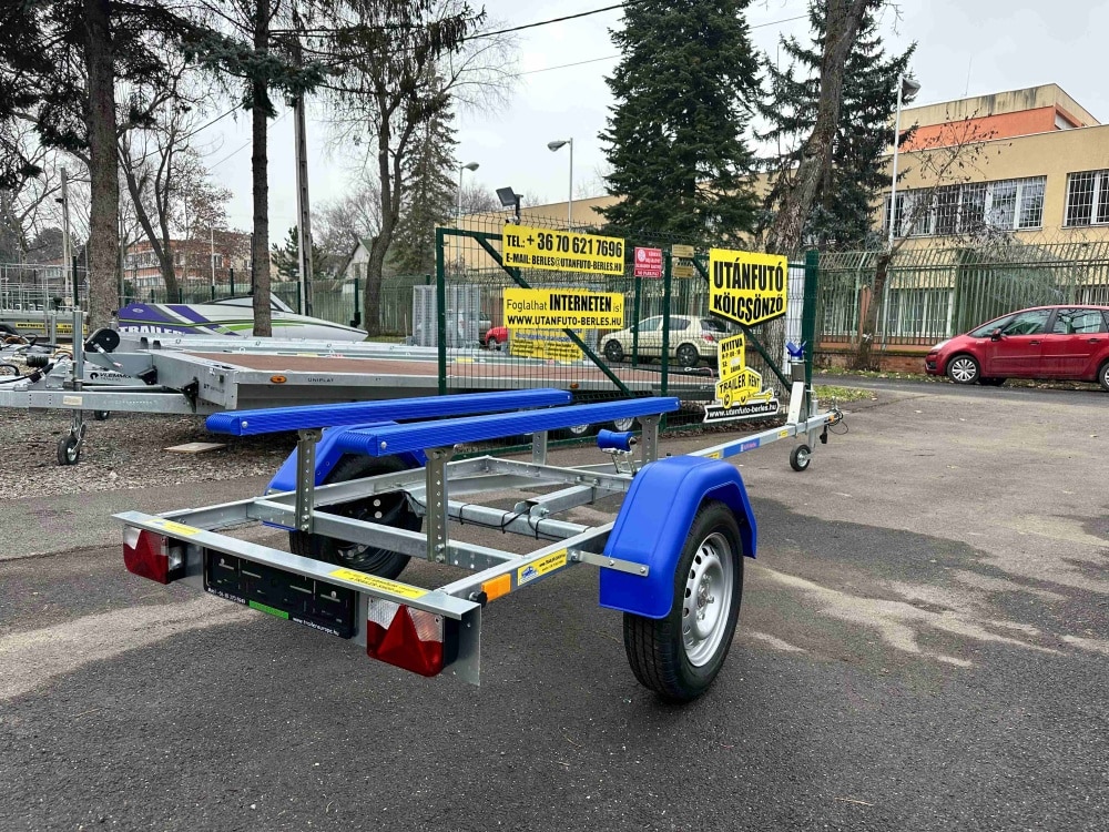 Az Alfa Marine csónakszállító utánfutó tűzihorganyzott acélszerkezete maximális védelmet biztosít a korrózióval és az időjárás viszontagságaival szemben. A csónak alátámasztását párnafák vagy görgők biztosítják, amelyek stabil és kíméletes megtámasztást nyújtanak a hajótest számára. Az erős alváz és a precízen kialakított tartóelemek kiemelkedő stabilitást garantálnak még teljes terhelés mellett is. A hátsó rész kihúzható, így a hosszabb csónaktestek is könnyedén felhelyezhetők és biztonságosan rögzíthetők. A nyitott kialakítás lehetővé teszi különféle méretű és formájú vízi járművek szállítását. A szerkezet kialakítása praktikus, könnyű kezelhetőséget és egyszerű használatot tesz lehetővé minden körülmény között. A kiváló anyaghasználat biztosítja a hosszú távú, megbízható működést. Az utánfutó jól viseli az úthibák okozta rázkódásokat és a rendszeres használatból eredő fizikai terhelést. A „További információk” szekcióban részletes adatokat talál a hajó és csónakszállító méreteiről, felszereltségéről és opcionális kiegészítőiről.