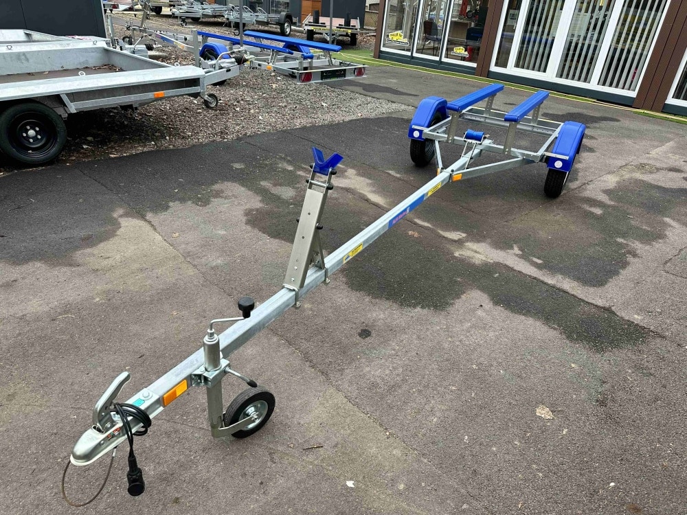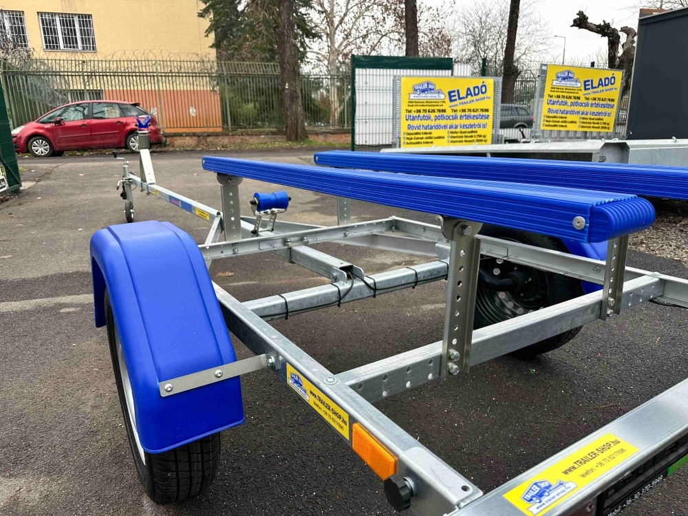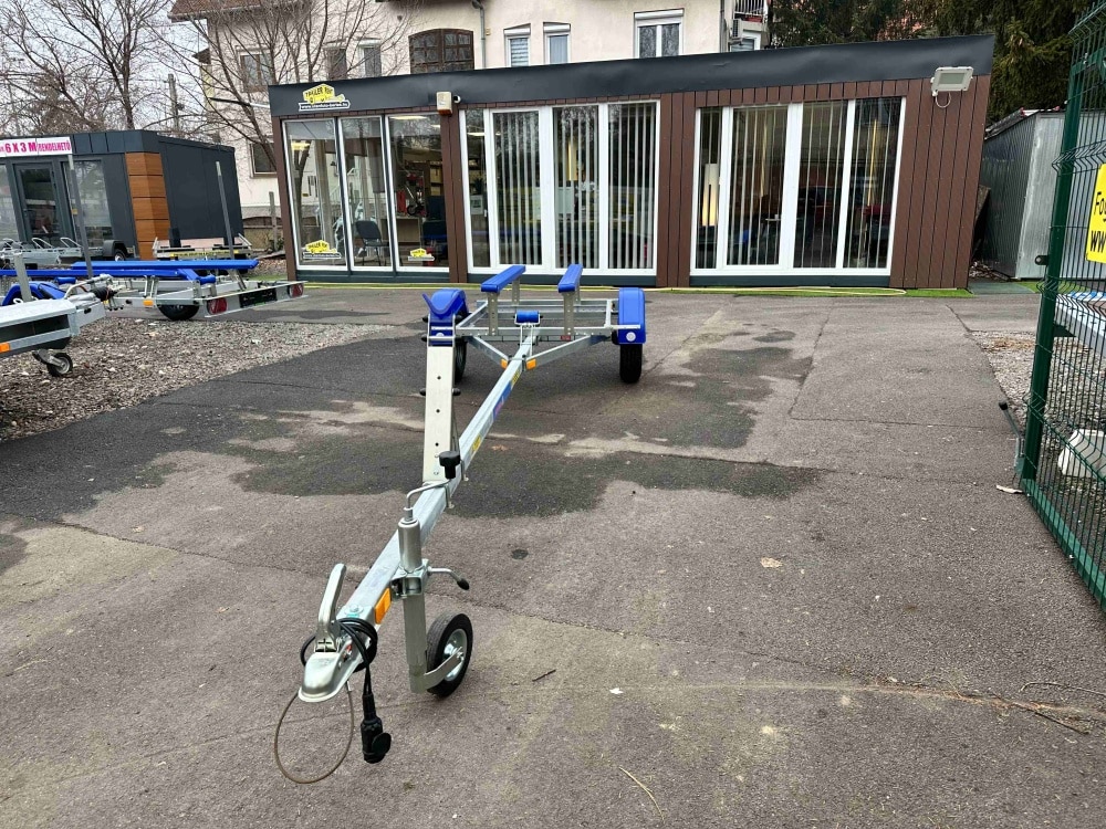 Az Alfa Marine csónakszállító utánfutó tűzihorganyzott acélszerkezete maximális védelmet biztosít a korrózióval és az időjárás viszontagságaival szemben. A csónak alátámasztását párnafák vagy görgők biztosítják, amelyek stabil és kíméletes megtámasztást nyújtanak a hajótest számára. Az erős alváz és a precízen kialakított tartóelemek kiemelkedő stabilitást garantálnak még teljes terhelés mellett is. A hátsó rész kihúzható, így a hosszabb csónaktestek is könnyedén felhelyezhetők és biztonságosan rögzíthetők. A nyitott kialakítás lehetővé teszi különféle méretű és formájú vízi járművek szállítását. A szerkezet kialakítása praktikus, könnyű kezelhetőséget és egyszerű használatot tesz lehetővé minden körülmény között. A kiváló anyaghasználat biztosítja a hosszú távú, megbízható működést. Az utánfutó jól viseli az úthibák okozta rázkódásokat és a rendszeres használatból eredő fizikai terhelést. A „További információk” szekcióban részletes adatokat talál a hajó és csónakszállító méreteiről, felszereltségéről és opcionális kiegészítőiről.