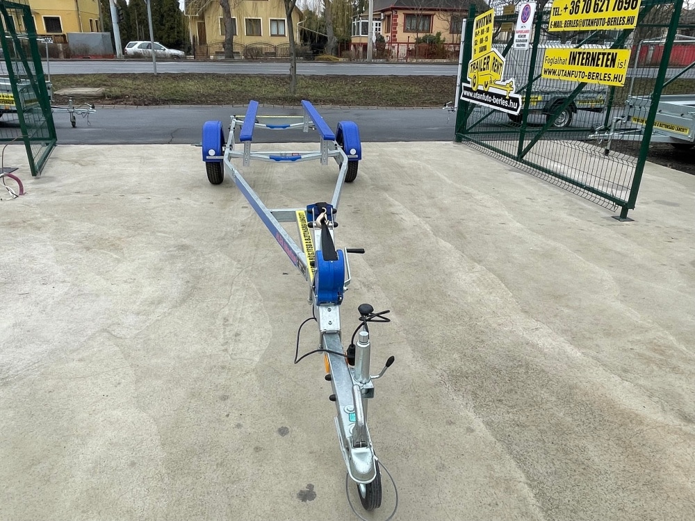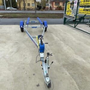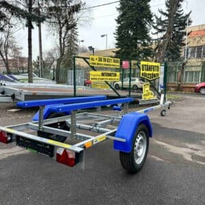 Az Alfa Marine csónakszállító utánfutó tűzihorganyzott acélszerkezete maximális védelmet biztosít a korrózióval és az időjárás viszontagságaival szemben. A csónak alátámasztását párnafák vagy görgők biztosítják, amelyek stabil és kíméletes megtámasztást nyújtanak a hajótest számára. Az erős alváz és a precízen kialakított tartóelemek kiemelkedő stabilitást garantálnak még teljes terhelés mellett is. A hátsó rész kihúzható, így a hosszabb csónaktestek is könnyedén felhelyezhetők és biztonságosan rögzíthetők. A nyitott kialakítás lehetővé teszi különféle méretű és formájú vízi járművek szállítását. A szerkezet kialakítása praktikus, könnyű kezelhetőséget és egyszerű használatot tesz lehetővé minden körülmény között. A kiváló anyaghasználat biztosítja a hosszú távú, megbízható működést. Az utánfutó jól viseli az úthibák okozta rázkódásokat és a rendszeres használatból eredő fizikai terhelést. A „További információk” szekcióban részletes adatokat talál a hajó és csónakszállító méreteiről, felszereltségéről és opcionális kiegészítőiről.