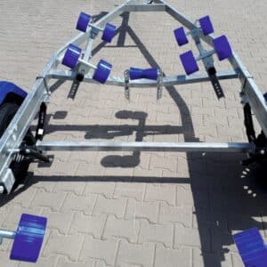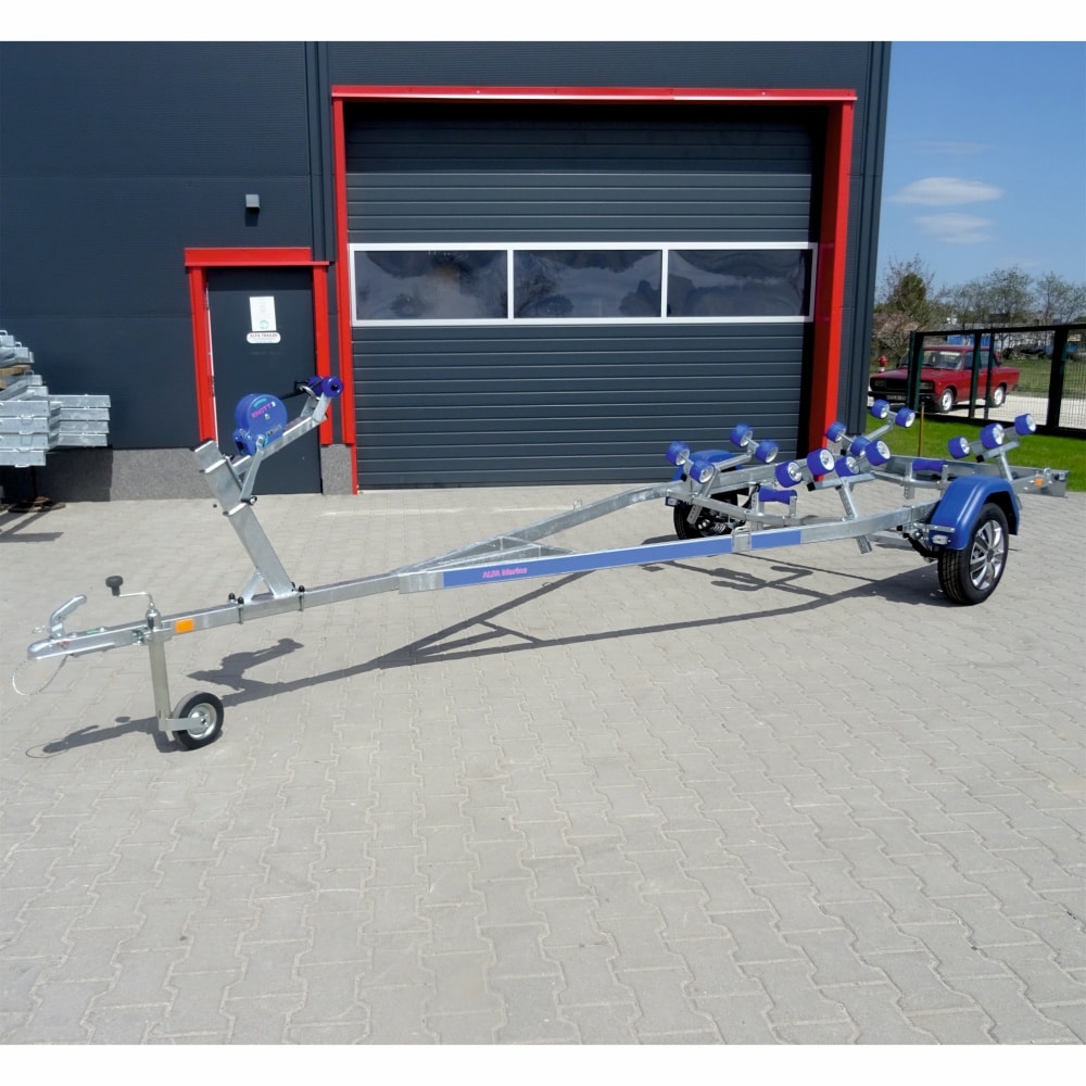 Az Alfa Marine csónakszállító utánfutó tűzihorganyzott acélszerkezete maximális védelmet biztosít a korrózióval és az időjárás viszontagságaival szemben. A csónak alátámasztását párnafák vagy görgők biztosítják, amelyek stabil és kíméletes megtámasztást nyújtanak a hajótest számára. Az erős alváz és a precízen kialakított tartóelemek kiemelkedő stabilitást garantálnak még teljes terhelés mellett is. A hátsó rész kihúzható, így a hosszabb csónaktestek is könnyedén felhelyezhetők és biztonságosan rögzíthetők. A nyitott kialakítás lehetővé teszi különféle méretű és formájú vízi járművek szállítását. A szerkezet kialakítása praktikus, könnyű kezelhetőséget és egyszerű használatot tesz lehetővé minden körülmény között. A kiváló anyaghasználat biztosítja a hosszú távú, megbízható működést. Az utánfutó jól viseli az úthibák okozta rázkódásokat és a rendszeres használatból eredő fizikai terhelést. A „További információk” szekcióban részletes adatokat talál a hajó és csónakszállító méreteiről, felszereltségéről és opcionális kiegészítőiről.