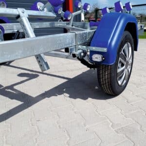 Az ALFA Marine csónakszállító alvázát megbízható, Knott gyártmányú torziós tengely alkotja. A 155/70 R13 méretű kerekek megfelelő stabilitást és terhelhetőséget biztosítanak a vízi járművek szállításához. A csónak alátámasztását párnafák vagy görgők biztosítják, amelyek stabil és biztonságos elhelyezést nyújtanak szállítás közben. A V-típusú vonórúd kiváló vontatási stabilitást garantál menet közben. A váz és tartóelemek teljes egészében horganyzott acélból készülnek, bordázott kialakításuk révén merev szerkezetet alkotnak, amely ellenáll a deformálódásnak. A hátsó rész kihúzható, így a csónak fel- és lehelyezése gyorsan és egyszerűen elvégezhető. Az ALFA Marine csónakszállító ideális választás minden olyan felhasználó számára, aki megbízható és tartós megoldást keres vízi járműve szállításához.