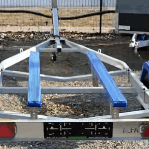 Az Alfa Marine csónakszállító utánfutó tűzihorganyzott acélszerkezete maximális védelmet biztosít a korrózióval és az időjárás viszontagságaival szemben. A csónak alátámasztását párnafák vagy görgők biztosítják, amelyek stabil és kíméletes megtámasztást nyújtanak a hajótest számára. Az erős alváz és a precízen kialakított tartóelemek kiemelkedő stabilitást garantálnak még teljes terhelés mellett is. A hátsó rész kihúzható, így a hosszabb csónaktestek is könnyedén felhelyezhetők és biztonságosan rögzíthetők. A nyitott kialakítás lehetővé teszi különféle méretű és formájú vízi járművek szállítását. A szerkezet kialakítása praktikus, könnyű kezelhetőséget és egyszerű használatot tesz lehetővé minden körülmény között. A kiváló anyaghasználat biztosítja a hosszú távú, megbízható működést. Az utánfutó jól viseli az úthibák okozta rázkódásokat és a rendszeres használatból eredő fizikai terhelést. A „További információk” szekcióban részletes adatokat talál a hajó és csónakszállító méreteiről, felszereltségéről és opcionális kiegészítőiről.