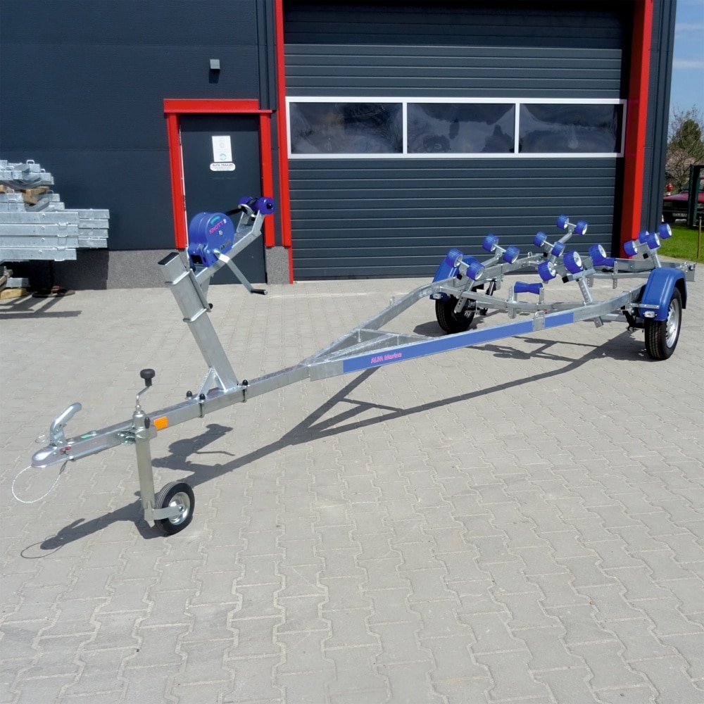 Az Alfa Marine csónakszállító utánfutó tűzihorganyzott acélszerkezete maximális védelmet biztosít a korrózióval és az időjárás viszontagságaival szemben. A csónak alátámasztását párnafák vagy görgők biztosítják, amelyek stabil és kíméletes megtámasztást nyújtanak a hajótest számára. Az erős alváz és a precízen kialakított tartóelemek kiemelkedő stabilitást garantálnak még teljes terhelés mellett is. A hátsó rész kihúzható, így a hosszabb csónaktestek is könnyedén felhelyezhetők és biztonságosan rögzíthetők. A nyitott kialakítás lehetővé teszi különféle méretű és formájú vízi járművek szállítását. A szerkezet kialakítása praktikus, könnyű kezelhetőséget és egyszerű használatot tesz lehetővé minden körülmény között. A kiváló anyaghasználat biztosítja a hosszú távú, megbízható működést. Az utánfutó jól viseli az úthibák okozta rázkódásokat és a rendszeres használatból eredő fizikai terhelést. A „További információk” szekcióban részletes adatokat talál a hajó és csónakszállító méreteiről, felszereltségéről és opcionális kiegészítőiről.