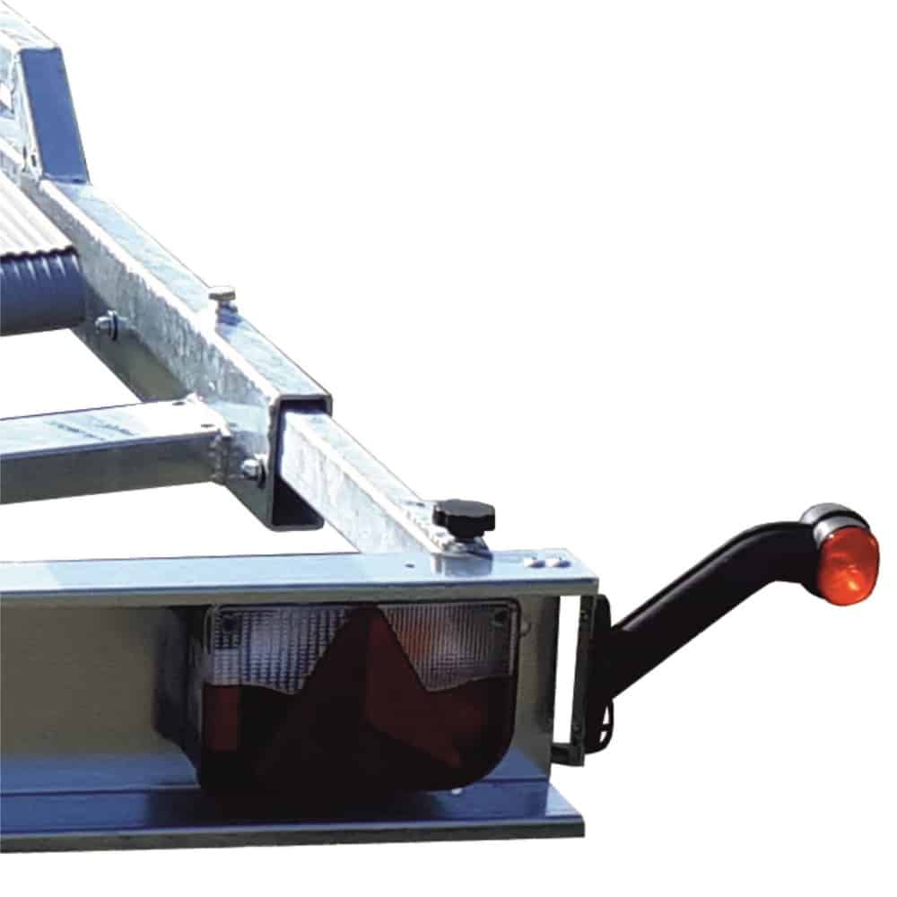 Az Alfa Marine csónakszállító utánfutó tűzihorganyzott acélszerkezete maximális védelmet biztosít a korrózióval és az időjárás viszontagságaival szemben. A csónak alátámasztását párnafák vagy görgők biztosítják, amelyek stabil és kíméletes megtámasztást nyújtanak a hajótest számára. Az erős alváz és a precízen kialakított tartóelemek kiemelkedő stabilitást garantálnak még teljes terhelés mellett is. A hátsó rész kihúzható, így a hosszabb csónaktestek is könnyedén felhelyezhetők és biztonságosan rögzíthetők. A nyitott kialakítás lehetővé teszi különféle méretű és formájú vízi járművek szállítását. A szerkezet kialakítása praktikus, könnyű kezelhetőséget és egyszerű használatot tesz lehetővé minden körülmény között. A kiváló anyaghasználat biztosítja a hosszú távú, megbízható működést. Az utánfutó jól viseli az úthibák okozta rázkódásokat és a rendszeres használatból eredő fizikai terhelést. A „További információk” szekcióban részletes adatokat talál a hajó és csónakszállító méreteiről, felszereltségéről és opcionális kiegészítőiről.
