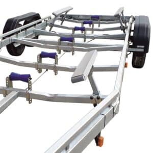 Az ALFA Marine csónakszállító horganyzott acélból készült, amely ellenáll a rozsdának és az időjárási viszonyoknak. A csónakszállító kifejezetten csónakok és hajók szállítására lett tervezve, így ideális választás vízi járművek biztonságos és megbízható szállításához. A szerkezetet párnafák vagy görgők biztosítják, amelyek stabilan megtámasztják a szállított járművet. Az ALFA csónakszállító egyszerű, de strapabíró kialakításával biztosítja a vízi járművek biztonságos és kényelmes szállítását. Az ALFA csónakszállítók tökéletes megoldást kínálnak csónakok és hajók szállítására.