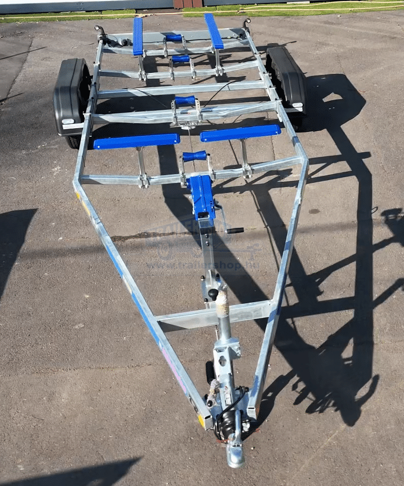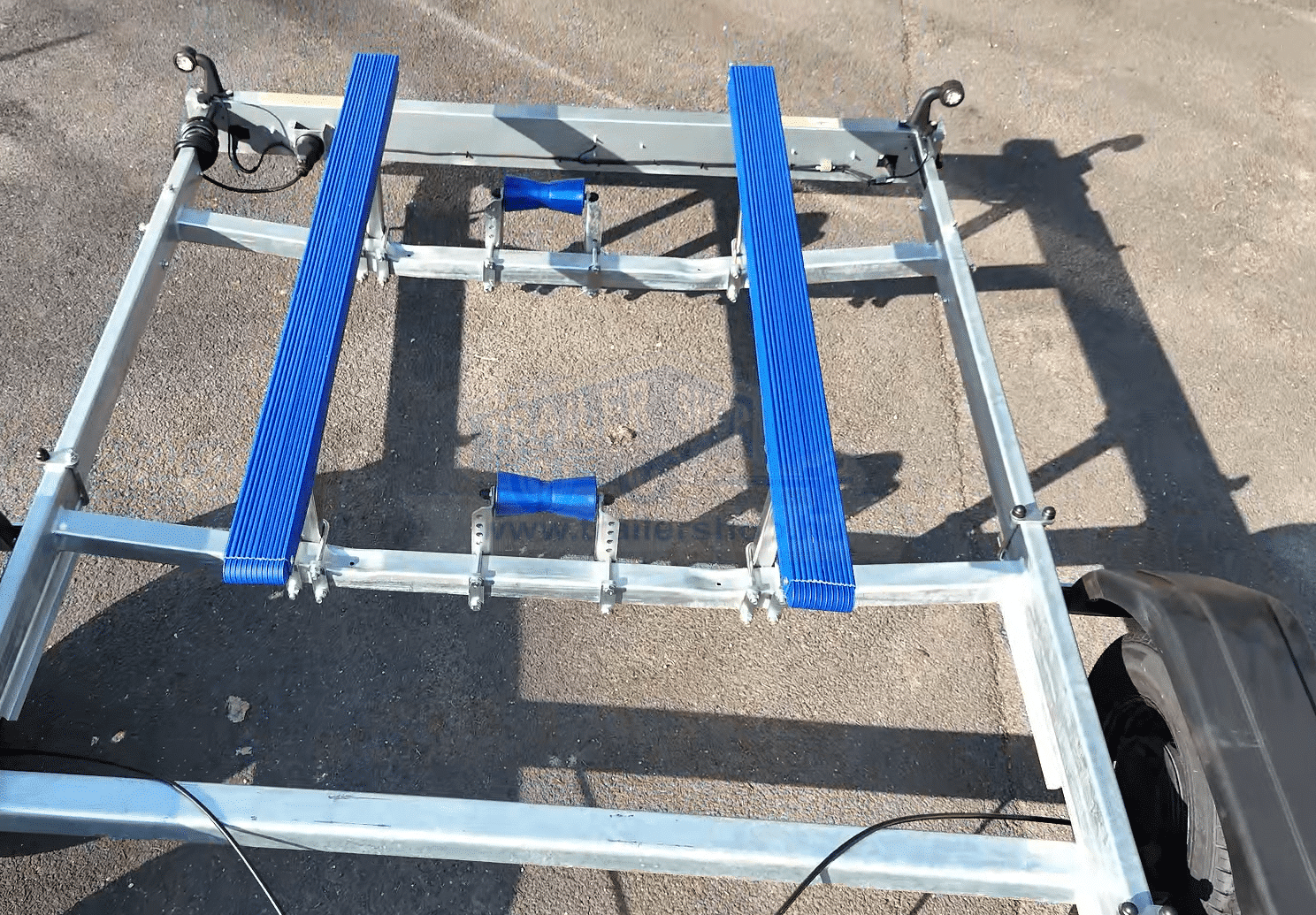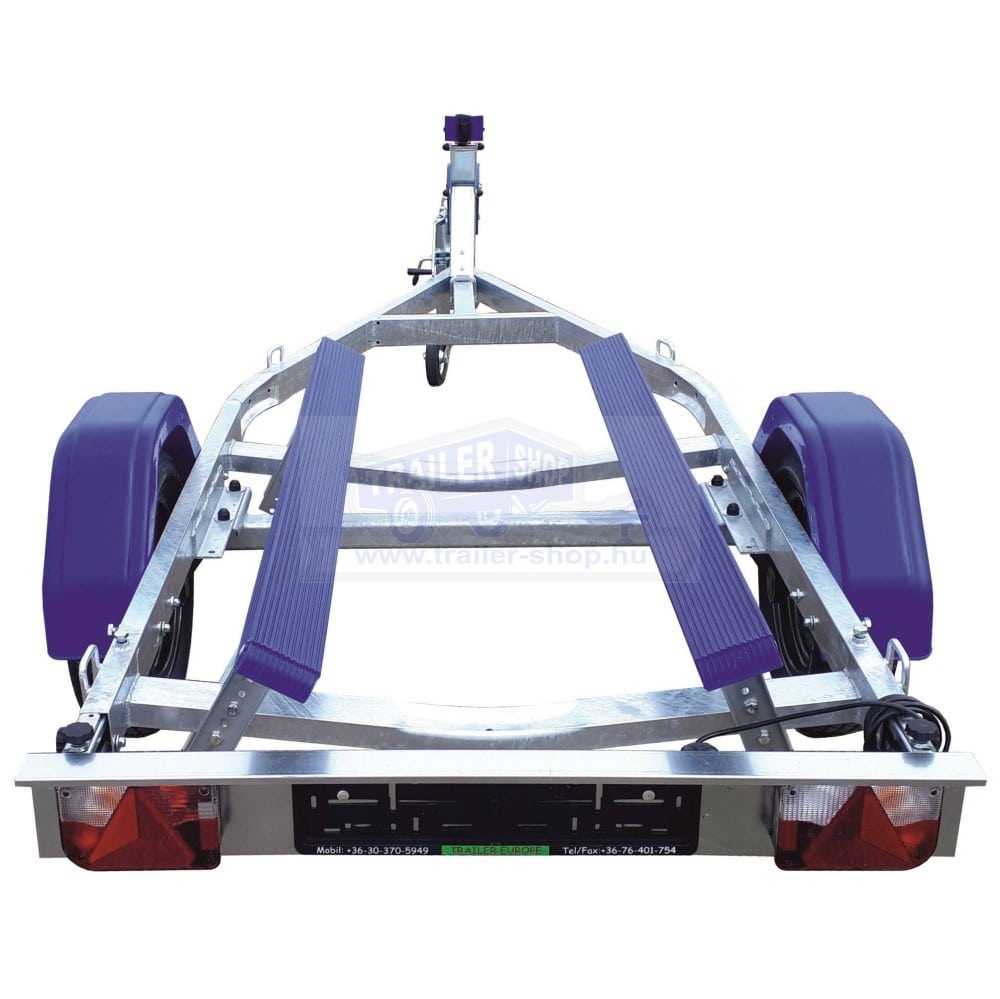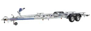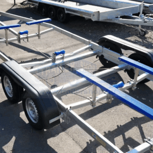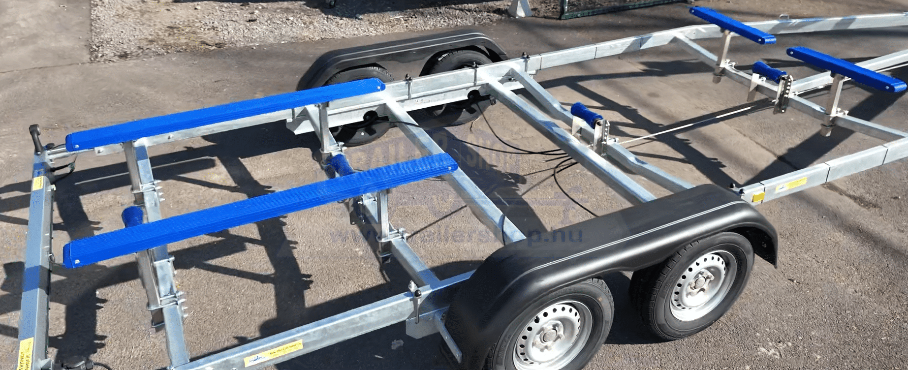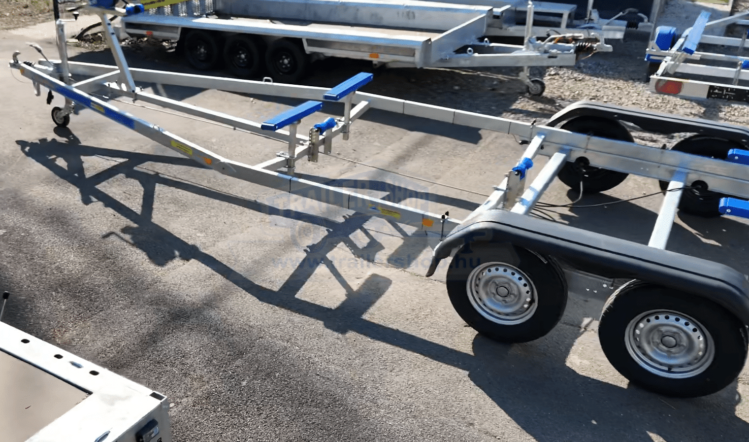 Az Alfa Marine csónakszállító utánfutó tűzihorganyzott acélszerkezete maximális védelmet biztosít a korrózióval és az időjárás viszontagságaival szemben. A csónak alátámasztását párnafák vagy görgők biztosítják, amelyek stabil és kíméletes megtámasztást nyújtanak a hajótest számára. Az erős alváz és a precízen kialakított tartóelemek kiemelkedő stabilitást garantálnak még teljes terhelés mellett is. A hátsó rész kihúzható, így a hosszabb csónaktestek is könnyedén felhelyezhetők és biztonságosan rögzíthetők. A nyitott kialakítás lehetővé teszi különféle méretű és formájú vízi járművek szállítását. A szerkezet kialakítása praktikus, könnyű kezelhetőséget és egyszerű használatot tesz lehetővé minden körülmény között. A kiváló anyaghasználat biztosítja a hosszú távú, megbízható működést. Az utánfutó jól viseli az úthibák okozta rázkódásokat és a rendszeres használatból eredő fizikai terhelést. A „További információk” szekcióban részletes adatokat talál a hajó és csónakszállító méreteiről, felszereltségéről és opcionális kiegészítőiről.