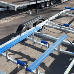Az ALFA Marine csónakszállító horganyzott acélból készült, amely ellenáll a rozsdának és az időjárási viszonyoknak. A csónakszállító kifejezetten csónakok és hajók szállítására lett tervezve, így ideális választás vízi járművek biztonságos és megbízható szállításához. A szerkezetet párnafák vagy görgők biztosítják, amelyek stabilan megtámasztják a szállított járművet. Az ALFA csónakszállító egyszerű, de strapabíró kialakításával biztosítja a vízi járművek biztonságos és kényelmes szállítását. Az ALFA csónakszállítók tökéletes megoldást kínálnak csónakok és hajók szállítására.
