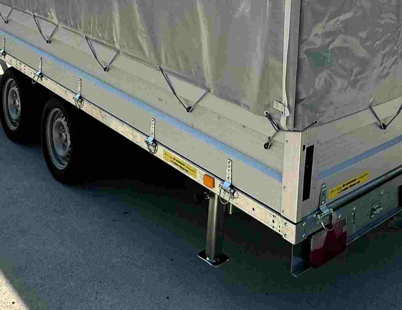 Az automata támasztóláb célja a stabilitás növelése rakodás közben. Használatával megakadályozható, hogy az utánfutó megbillenjen vagy elmozduljon, amikor a súlypont áthelyeződik. Automatikus működése miatt nem igényel kézi beavatkozást, így gyors és kényelmes használatot biztosít. Főként nehéz vagy nagyobb tömegű rakományok esetén válik igazán hasznossá. A biztonság mellett a támasztóláb hozzájárul az utánfutó hosszabb élettartamához is. Anyaga galvanizált, statikus teherbírása 1300 kg/láb. Kurbli használata szükséges.